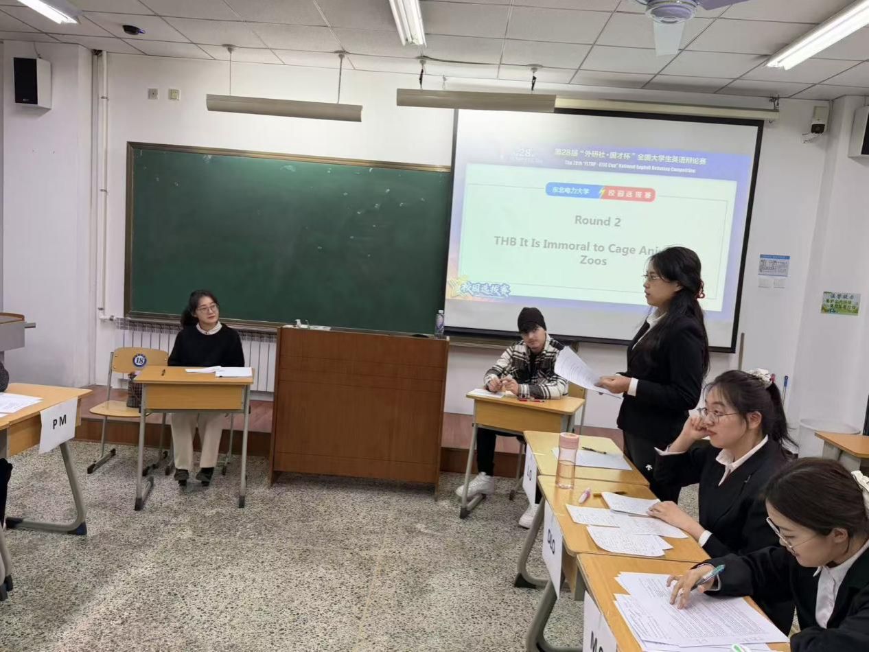 为深入贯彻党的二十届四中全会和全国教育工作会议精神,落实《教育强国建设规划纲要(2024—2035年)》,全面落实立德树人根本任务,服务国家国际传播能力建设,推动新时代高校外语教育改革创新,我校近日成功举办第28届“外研社·国才杯”全国大学生英语辩论赛校园选拔赛。本次选拔赛由东北电力大学教务处和创新创业学院主办,外国语学院承办。